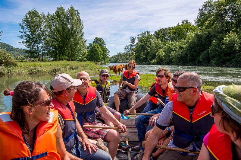 Start ist oberhalb des Wasserschlosses, wo gut die Hälfte des Wassers aus der Schweiz zusammenfliesst. Wir rudern durch unberührte Inselwelten, vorbei an der mittelalterlichen Burgruine Freudenau und durch die Schleuse beim Flusskraftwerk Beznau bis nach Döttingen.