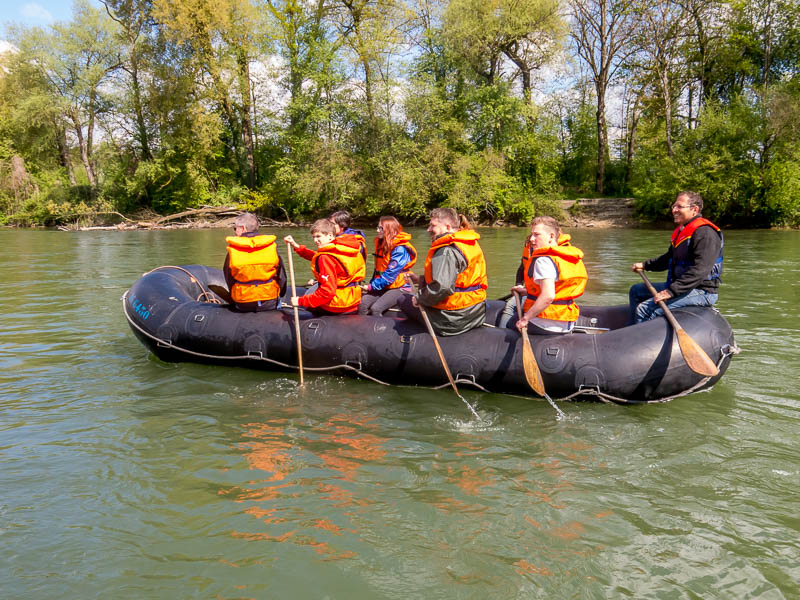 Nach dem Einwassern unterhalb des Kraftwerks Reckingen (D) fahren wir durch die letzte Fliessstrecke am Rhein zwischen dem Rheinfall Schaffhausen und Basel. Der Rhein hat sich hier in das Kalkgestein des Juras eingegraben und bildet im Bereich Zurzach eine breitere Schotterebene. Der Fluss ist auch die natürliche Grenze zwischen der Schweiz und Deutschland. Vom Fluss aus kann man neben der abwechslungsreichen Landschaft auch verschiedene Bauwerke der Industrialisierung und der früheren Salzgewinnung sehen. Nach einer grossen Flussschlaufe landen wir im Chly Rhy Rietheim und wassern aus. Hier wurde nach vielen Jahren Verhandlung eines der grössten Auengebiete im Aargau renaturiert. 2015 sind ein durchflossener Seitenarm, zahlreiche Stillgewässer, Tümpel, Feuchtwiesen und ein weiter Mündungsbereich gestaltet worden. Für Besucher wurde speziell ein Picknickplatz am Rheinufer, eine Aussichtsplattform auf einem ehemaligen Bunker und ein Beobachtungsturm geschaffen. Ein Rundgang lohnt sich auf jeden Fall.